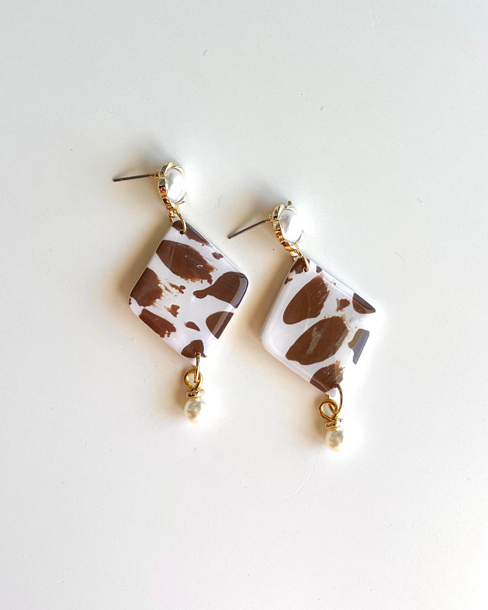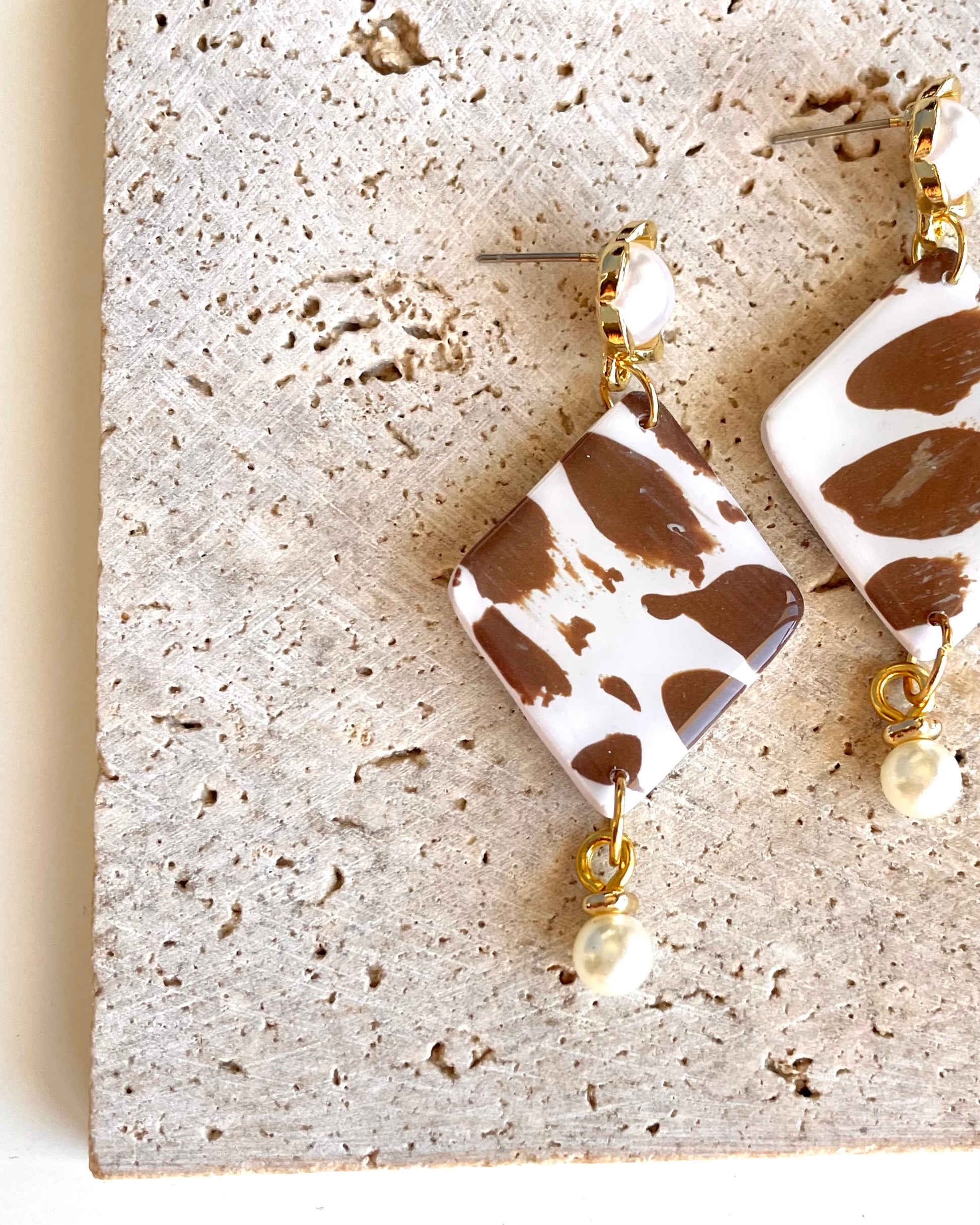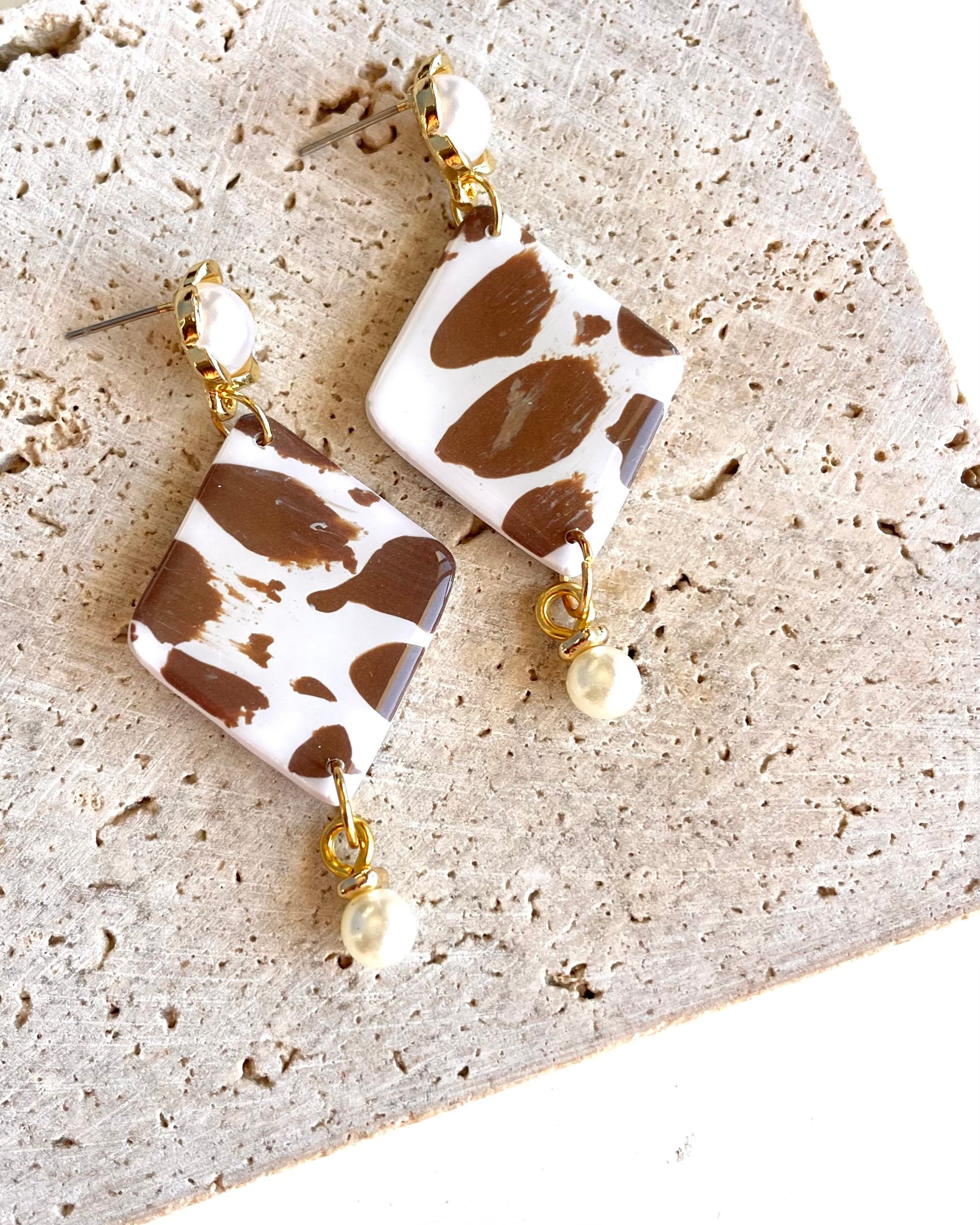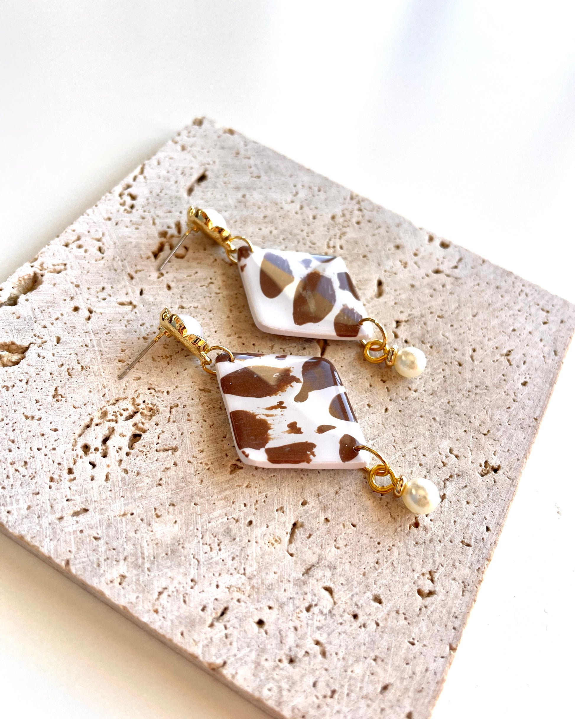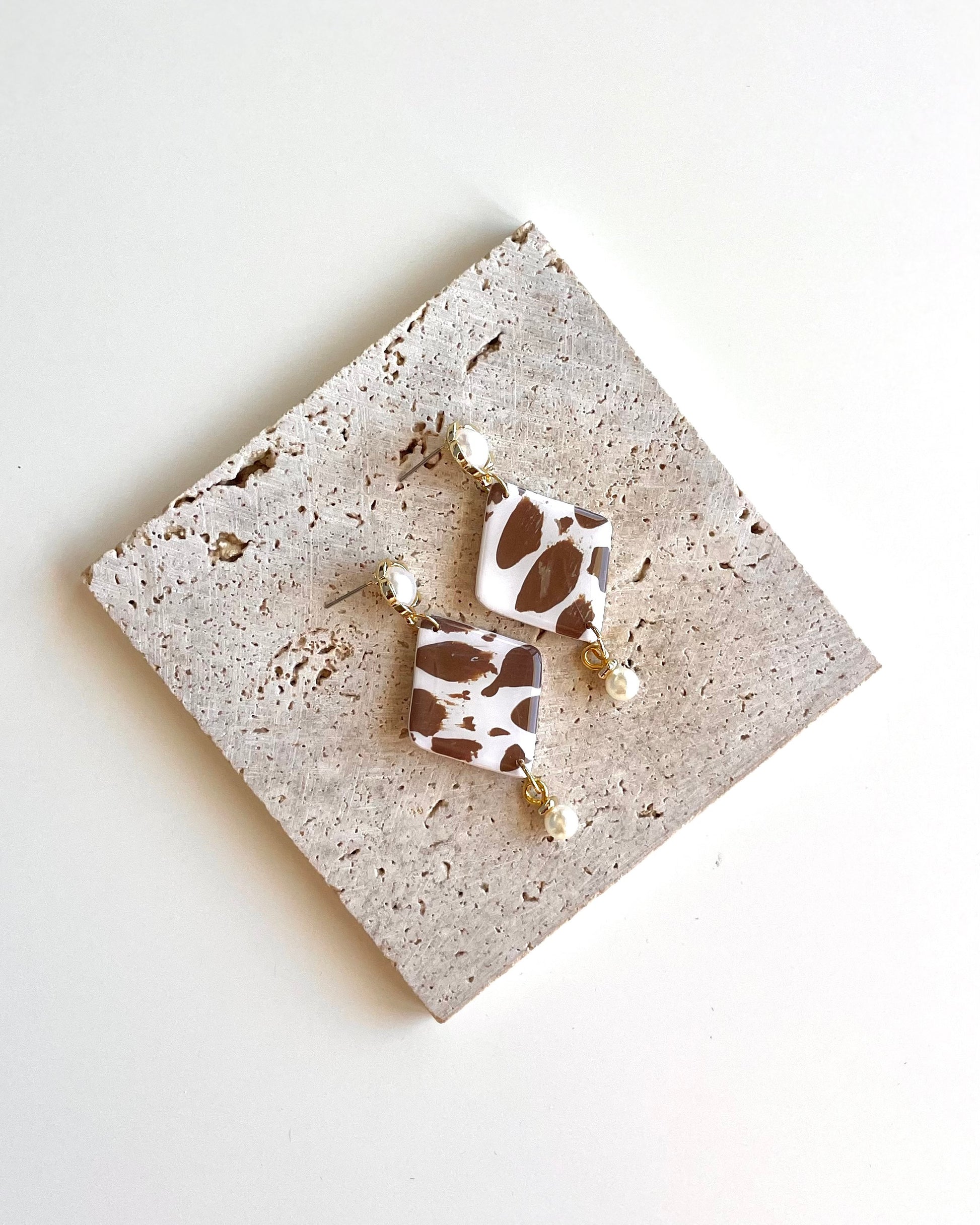 Inspirados na harmonia da natureza, os Raiz Natural unem formas geométricas, padrão cow print e a delicadeza da pérola. O design em losango cria um equilíbrio perfeito entre sofisticação e autenticidade artesanal.