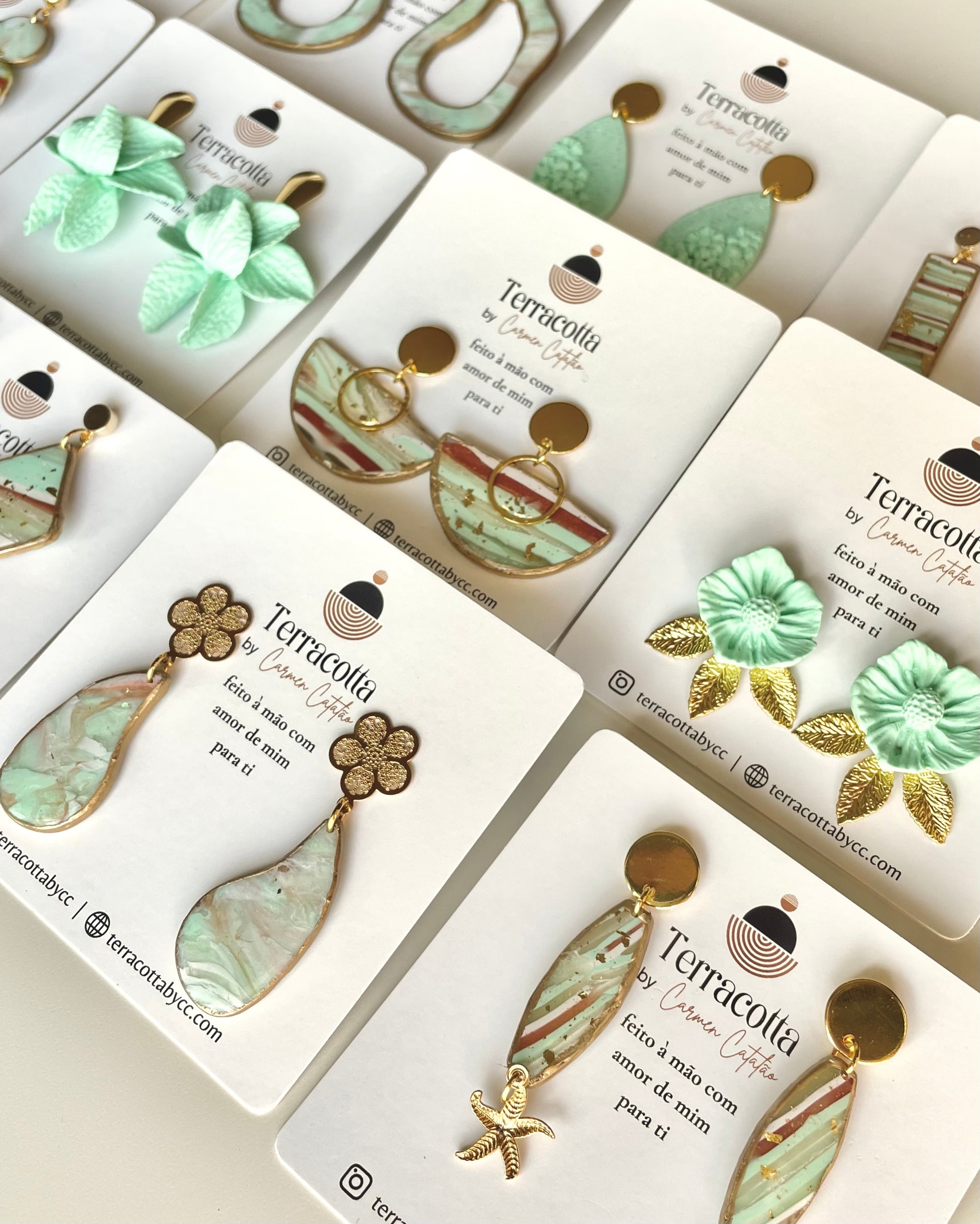 As cores menta, areia e madrepérola misturam-se como se tivessem sido desenhadas pelas próprias marés. O design vai desde formas orgânicas e florais a espirais e texturas marinhas, ideais para quem adora peças únicas, com alma e um toque de fantasia natural.