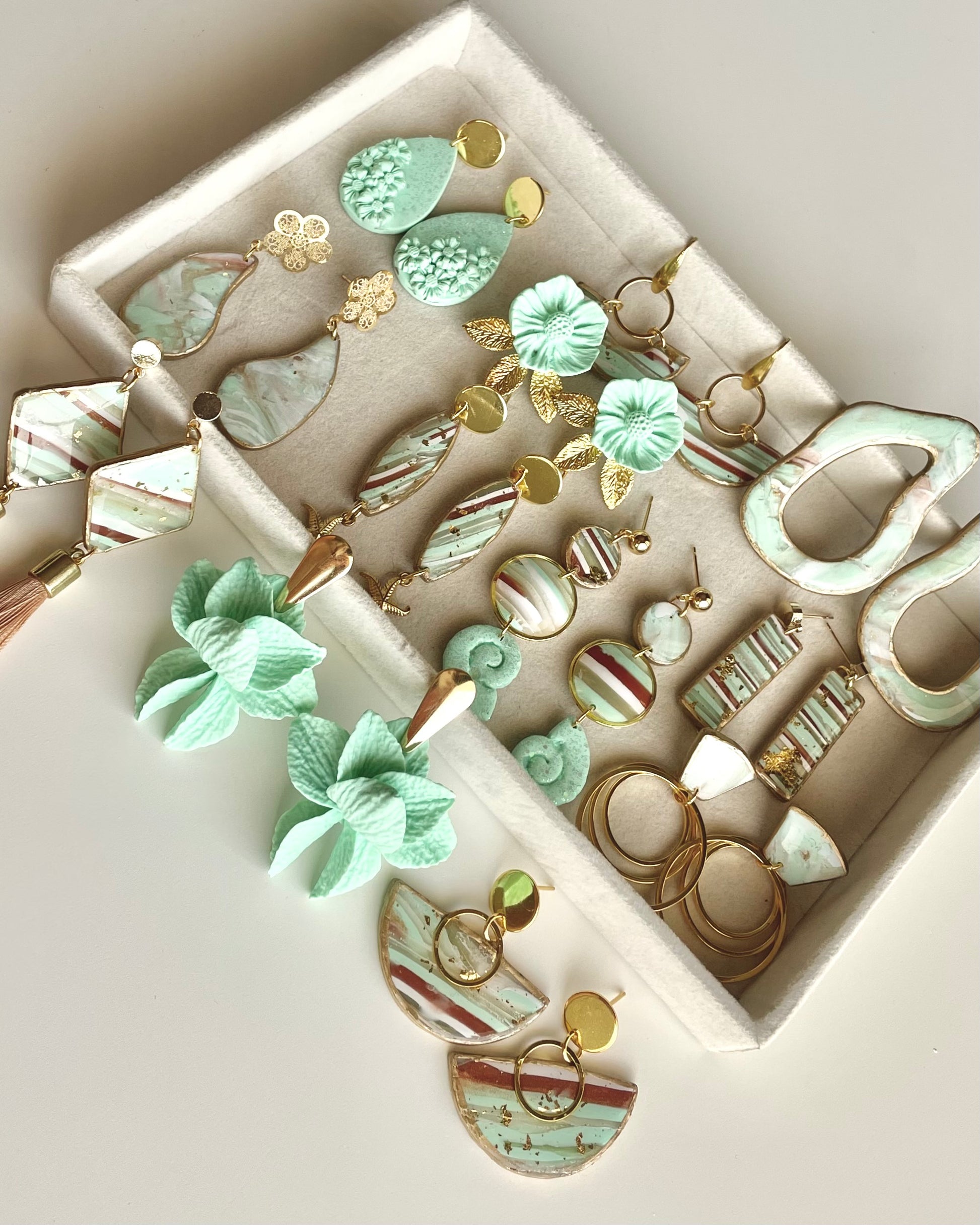 As cores menta, areia e madrepérola misturam-se como se tivessem sido desenhadas pelas próprias marés. O design vai desde formas orgânicas e florais a espirais e texturas marinhas, ideais para quem adora peças únicas, com alma e um toque de fantasia natural.